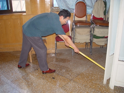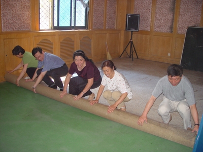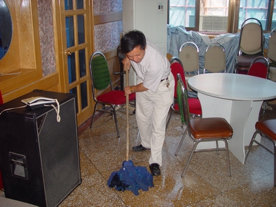 為慶祝建黨82周年,過好高質量的“政治生日”,第一黨支部全體黨員胸帶黨徽,分工協(xié)作,或端水擦拭,或執(zhí)帚清塵,對東大廳運動設備、音像設備、桌椅、地面等進行全面打掃、擦拭和整理。考慮到職工文體活動的需要,為職工創(chuàng)造良好的運動環(huán)境,第一黨支部的黨員同志們還對乒乓球臺附近環(huán)境進行了清理整治。