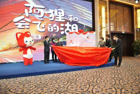 領導、嘉賓為新書揭幕 書花展示 配套文創產品 1月29日,以節約用水為主題的科普繪本《阿貍和會飛的湖》新書發布通過網絡平臺全程直播。該書由全國節約用水辦公